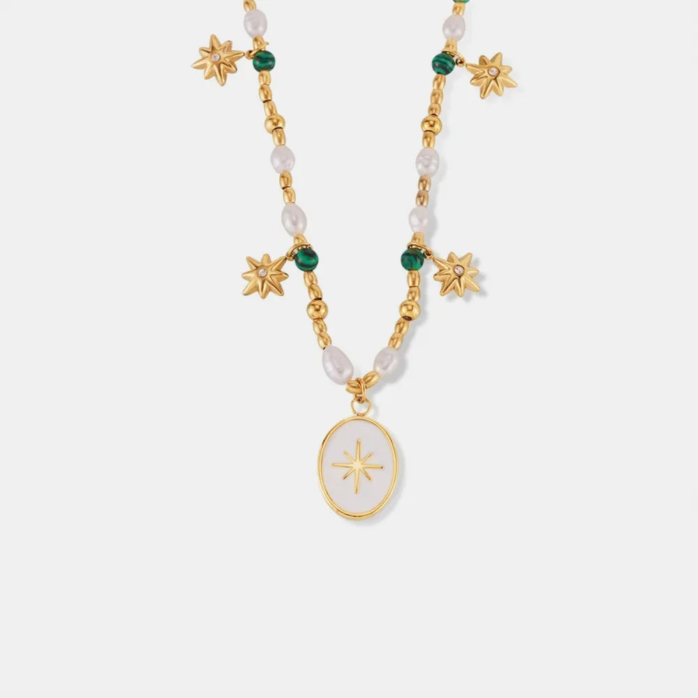 Titanium Steel Freshwater Pearl Oval Pendant Necklace